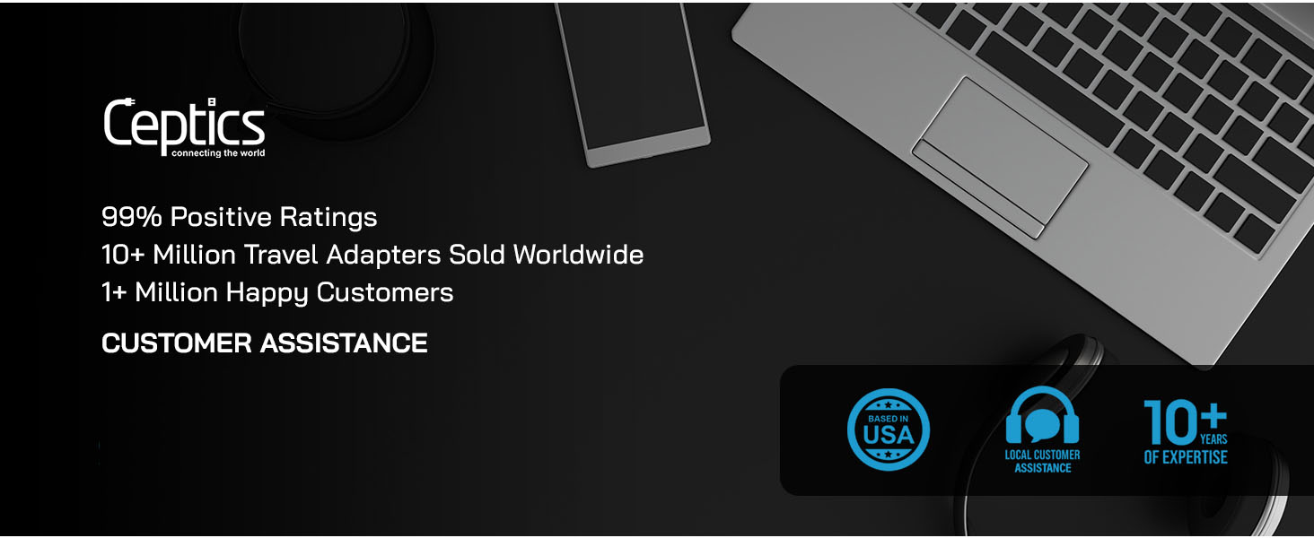 TRAVEL-OPTIMIZED DESIGN: The Ceptics universal travel adapter Europe is designed for convenience, allowing you to charge essential devices like cell phones, laptops, and camera chargers with ease during your journeys.