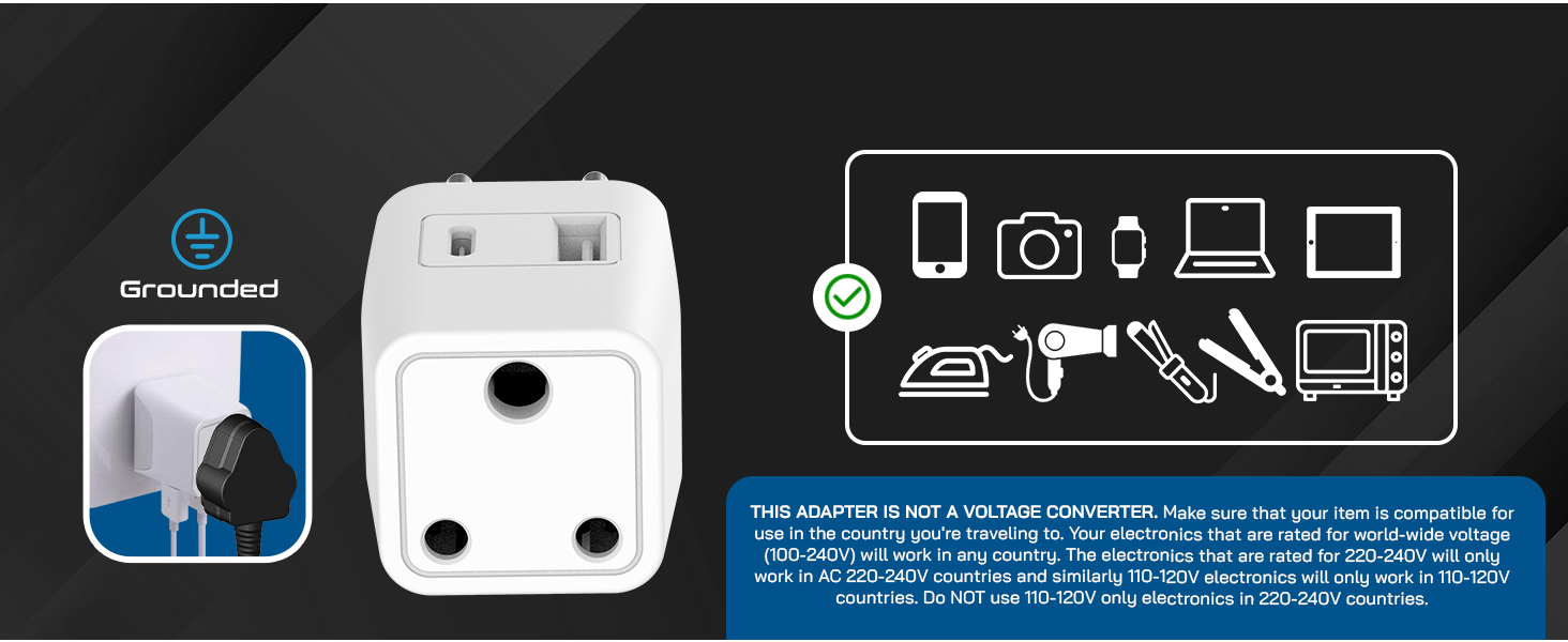 LIFETIME WARRANTY: Benefit from excellent customer service and long-term peace of mind with a Lifetime Warranty. However, it’s important to note that the adapter is not suitable for high-powered electrical appliances and does not convert voltage. Users ensure their electronics are compatible with the worldwide voltage range of 100-240V when using these adapters abroad.