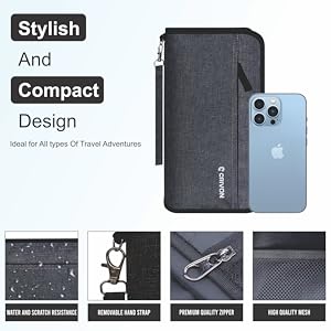 FUNCTIONALITY: Features dedicated slots for boarding passes, identity cards, and travel documents in a compact design