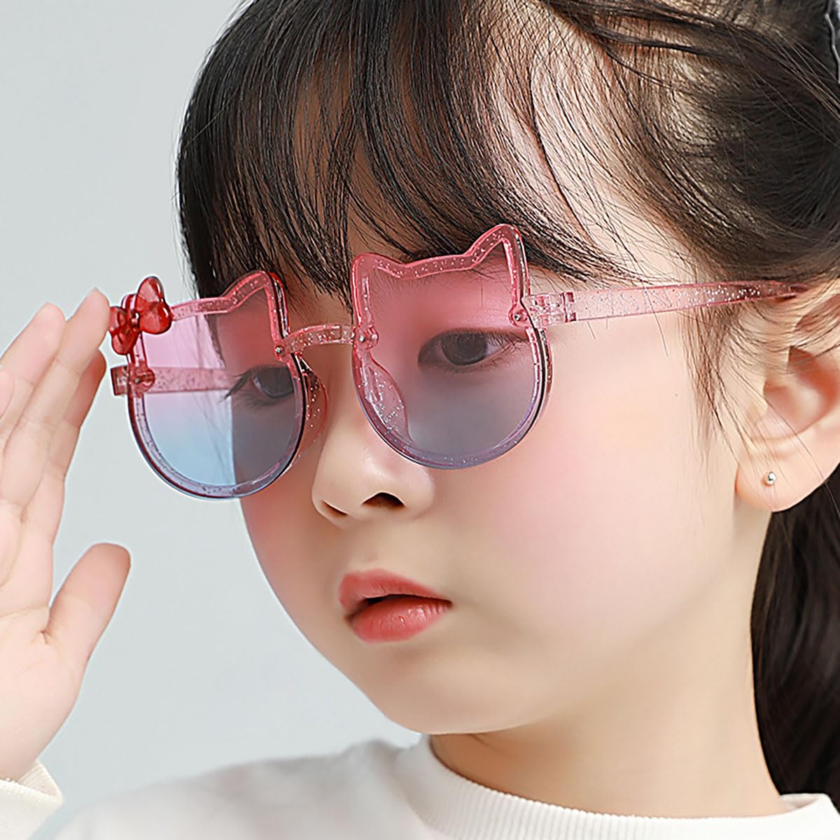 SYGA Kids Goggles, Modern Stylish Eyewears for Boy’s and Girls, Colorful Cat Shape, Suitable for Age 3 to 8 Years (TransBlue&GrdientPink)